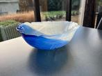 - blauwe glazen fruitschaal - diameter 36 cm - hoogte 12 cm - gewicht 2.4 Kg in perfecte staat (geen krassen)