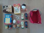Groenten, koekjes, fruitkaasjes, ... Van plastic, stof en karton. Met stoffen winkelmandje.