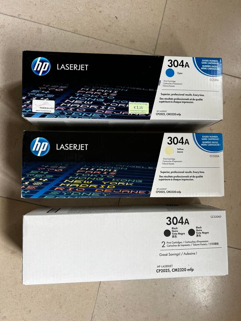 Nieuw, gesloten verpakking voor toestellen cp2025 en cm2320mpf cc532a yellow - cc531a cyan- cc530ad black
