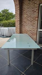 De eettafel is gebruikt, vertoont enkele gebruikssporen, maar is in goede staat. Het tafelblad is van glas en werd bij gebruik goe