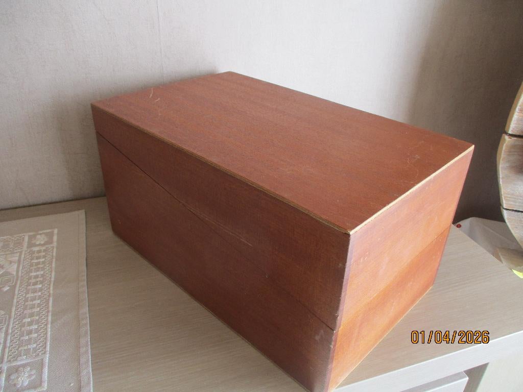 Houten kist met scharnierdeksel. Afmetingen 43 x 26 x 23cm. Afhalen in heusden-zolder of verzending.