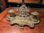 Vergulde bronzen pennenhouder met dubbele inktpot. Rond 1900. Zie mijn andere items voor een gecombineerde aanbieding.