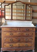 Belle commode ancienne en bois massif, avec grand miroir à trois volets et plateau en marbre blanc. Style louis philippe / début 1