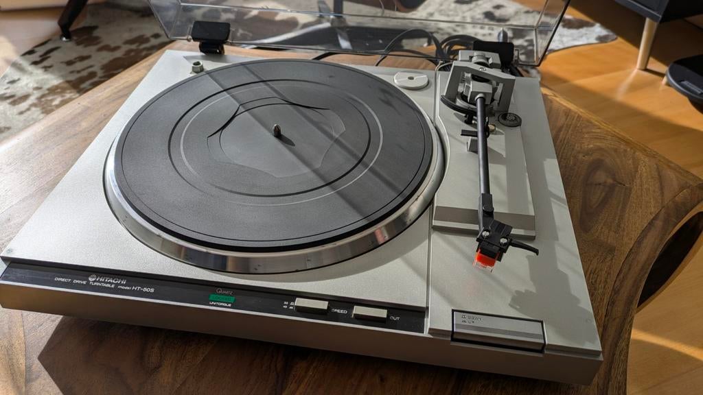 Hitachi HT-50S Direct drive PPL Quartz van 1981Made in japan. Volledig perfect functionerende platenspeler met recent element/naald. Semi automatisch (auto return), unitorque motor, moet niet afgesteld worden qua snelheid. Anti skate regelaar en g
