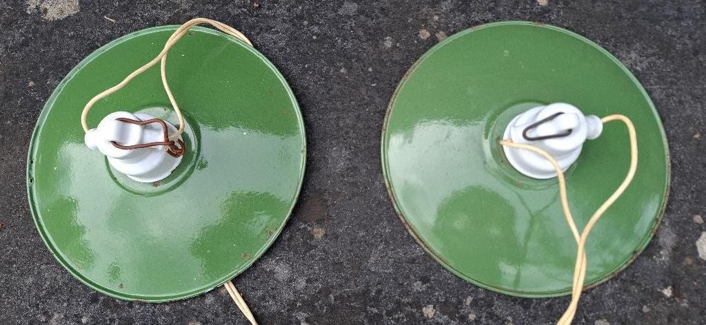Vintage industriële emaille hanglamp/atelierslamp (2stuks)