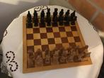Prachtig schaakspel met mooi houten schaakbord van 38 x 38 cm groot. De hand uitgesneden schaakfiguren zijn kompleet en in zeer go