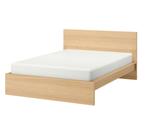 Cadre de lit plaqué chêne 140x200cm malm ikea, avec les lattes (sommier), le cadre de lit, la tête de lit. Petit rebord de chaque côté. Dispo à bruxelles (1030) matelas non inclus. Convertible avec le