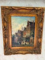 Schilderij op houten paneel, met tafereel oud amsterdam 19e eeuw gesigneerd j. Beeckhout afmetingen hoogte 60cm x breedte 50cm (in
