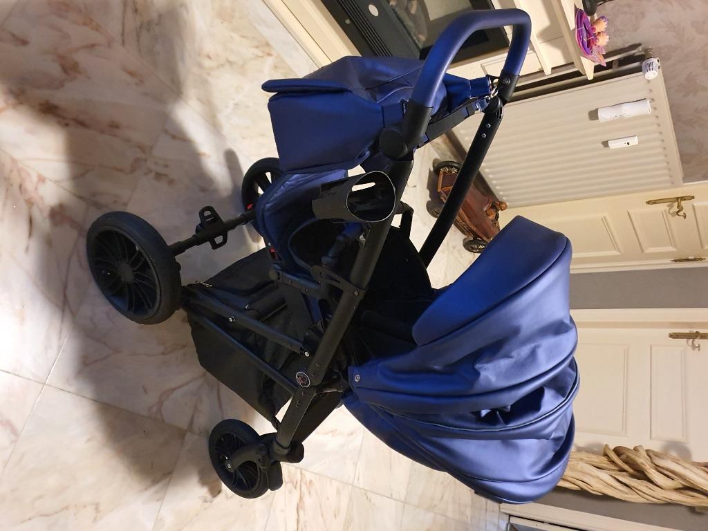 Complete wandelwagen met ventilatie, rug in draagmand kun je in verschillende standen zetten, de buggy kun je ook in 2 richtingen zetten met luchtbanden hele goede staat & heel gemakkelijk een ple