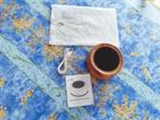 Vintage tennisracket (klein formaat) van donnay met leren of kunstleren grip. Met originele hoes. Racket voor volwassenen met vrij dun handvat. Het is al heel lang niet meer gebruikt. Afhalen in woluw