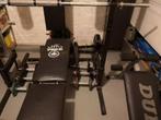 Bras, jambes, pectoraux, abdominaux, dos matériau métal description sale de body -building avec +/- 120 kg de plaques d'haltèr