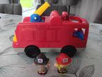 Plaats een van de brandweermannen op het gele cirkeltje achteraan de vrachtwagen, draai en ontdek leuke geluidseffecten. Zet je ee