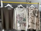 Kastopruiming - 3 t-shirts voor prijsje - 48 alle in heel goede staat! T-shirt in het midden is van peter hahn - 3/4 mouw 100% katoen okselbreedte 58cm - lengte 72cm andere 2 t-shirts : prachtige diep