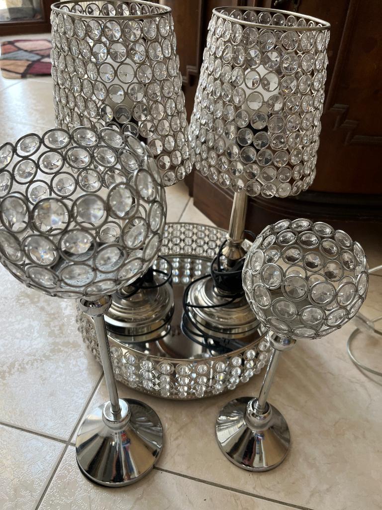 2schemerlampen , 2kaarsen kandelaars en plateau te koop