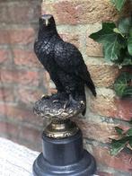 Pracht van groot vintage bronzen windhonden sculptuur elegante statige uitstaling geheel staat op marmer gesign 31 cm x 28