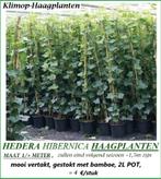 Wintergroene haagplanten hedera (hibernica), ierse klimop, maat 1/+ meter, met bamboestok, in pot, = 4 €/stuk -> zullen aan het einde van dit seizoen minstens 1,8o meter zijn. -> aanbevolen