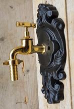 Buitenkraan gemaakt van massief messing achterplaat is gemaakt van massief gietijzer hoogte 12 cm, lengte 18 cm en breedte 9 cm. A