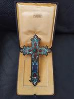 Charming french religious kruisje van ihs in geemailleerd bronze met cloisonne effect ,eind 19e.eeuw./Begin 20e eeuwse. Afmetting is h-15/cm 9,5cm.