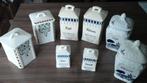 Antieke kruidenpotten, 6 grote en 2 kleine. Bij 1 grote is het deksel niet origineel , 1 kleine is gelijmd geweest . Verder in zeer mooie staat , ideaal voor versiering (buiten) keuken . Zie ook mn an