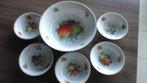 antieke , fleurige fruitschaaltjes en onderzet schaaltjes die niet beschadigd zijn . 1 Kom dia. 23Cm met 5 kleintjes dia. 13Cm . Zie ook mn andere artikelen.