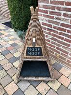 Woof woof rieten hondenmand tipi met kussen.