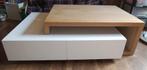 Moderne salontafel in wit met eikenfineer kader – in goede staat met gebruikssporen (zie foto's). Licht geschonden aan de achterkant (laatste foto