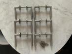 6 gebruikte deurklinken in goede staat met de nodige bevestigingsmaterialen er bij .