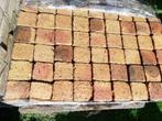 Afmetingen: 11cm x 11cm x 5,5 a 6 cm dik. Geen beton steen maar gebakken steen. Aantal: 25 m2 gestapeld op 3 paletten. Verpakt in