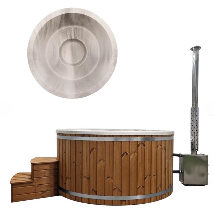 Thermolux hottub van heat therapy (koksijde) houtgestookt – gemaakt in de eu (geen chinees gerief) • geschikt voor 6 personen – ø 2 m • horizontale rvs 316 kachel • geïsoleerde ac