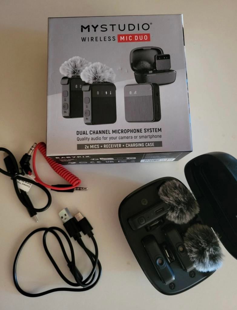 2 draadloze microfoons & zender in oplaadcase easypix mystudio in originele verpakking, inclusief alle onderdelen in perfecte staat nieuwprijs 110 euro