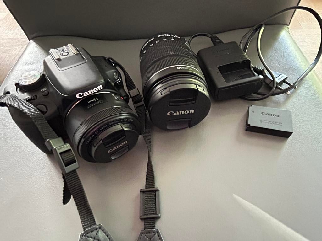 Parfait état - boîtier canon eos 100d - objectif canon 18-135 mm f/3.5-5.6 Avec filtre de protection - objectif canon 50mm f/1.8 - Chargeur - batterie d origine
