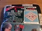 3 jumbo spellen met jumbo dammen.komt uit usa.heel leuk voor de jongste kinderen.de afmetingen zijn ongeveer 70 op 70 cm. Alles duidelijk op papier in het engels. Dam spel en 2 andere spelletjes.doek