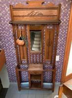 Art deco kapstok met hanggedeelte en koperen hangers. 2 Legplankjes, schuifje, spiegel. Ook plaats voor paraplu's.