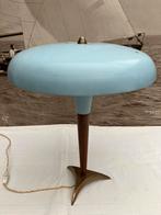 Oude tafellamp in mushroom-stijl van de belgische fabrikant massive, jaren ‘50. Uitvoering in gelakt metaal, hout en messing. Voll