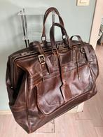 Oude lederen reistas in stevig buffalo leder, slot, voetjes en gespen in messing. In nette staat! Vraagprijs: €95 (of doe een