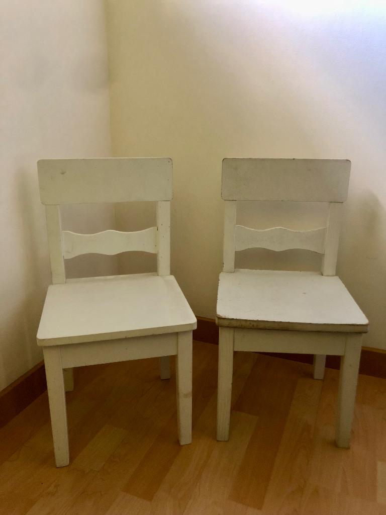 Stoeltje 1 in prima staat, stoeltje 2 kan likje verf gebruiken. Op te halen in merksem