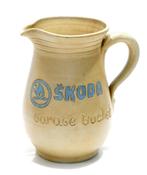 Cruche en grès vintage faite par la poterie dubois (bouffioulx) avec l'effigie de la marque skoda pour le garage buchet (n'