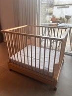 Babypark (97cm x 77cm) in hout met verstelbare bodem park staat op wieltjes; dus gemakkelijk verplaatsbaar. Parkmatras (90cm x 70cm) inbegrepen ophalen in letterhoutem of erondegem