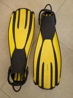 Duikvinnen met open hiel van mares (geel) maat r = regular bungee strap vier kanalen, dus viermaal zo veel stuwkracht stabiliseren