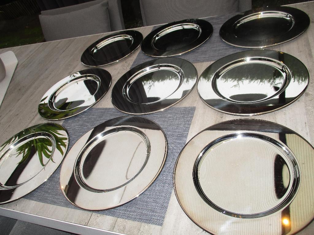 Onderzetborden dienbladen ,rvs/metaal inox dia 28cm in zeer goede staat ! Regio deinze
