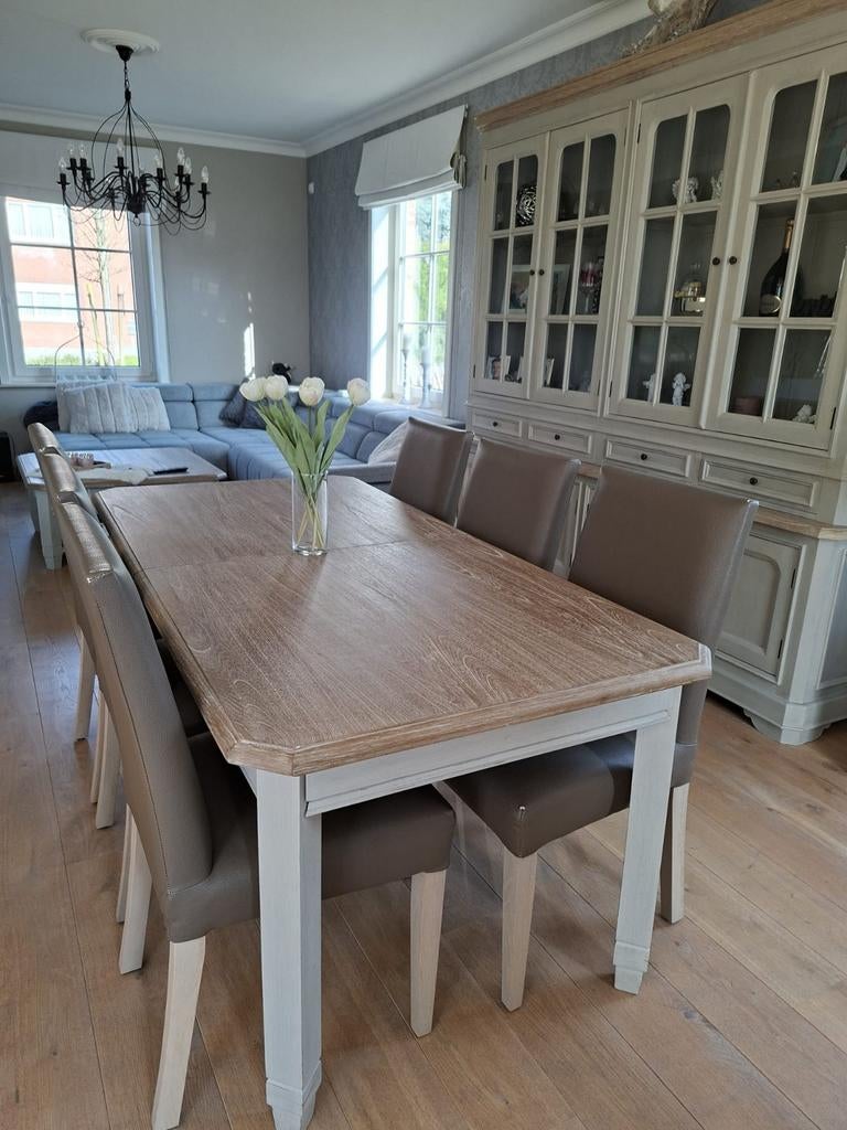 Tafel 180x90cm. Uittrekbaar tot 240cm 6 stoelen. Aangekocht bij sarah mo.