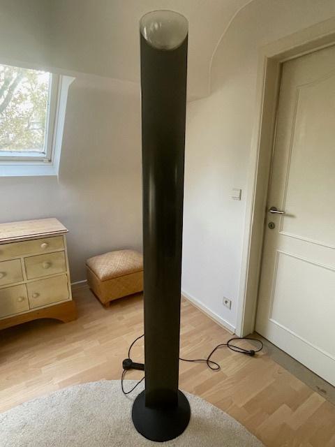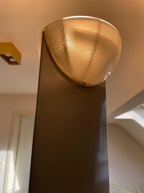 Mooie tijdloze design vloerlamp "adonis" van g.f. Frattini door luci. Deze is in de kleur antrasite metallic, de lamp heeft een verduistering in het glas en is dmv een dimmer te regelen. De