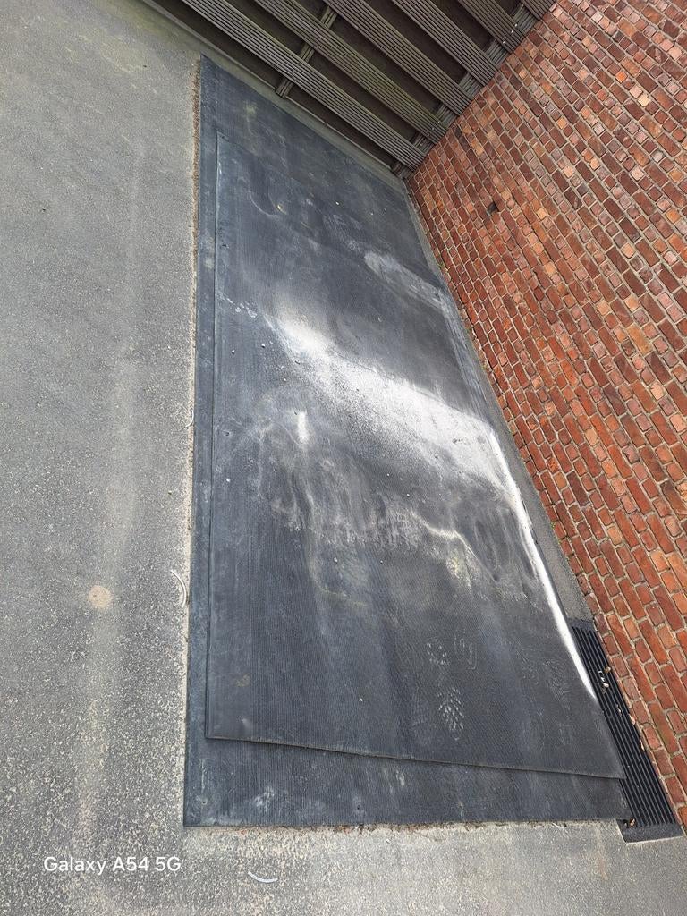 3 stuks rubber mat / rijplaat / putriem. 160 Cm breed. Met staaldraad. Loodzwaar. 2X 290cm 1x 400cm. Voor details zie foto's. 50 Euro per stuk. Af te halen in peer.
