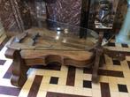 En chêne et plateau en verre securit saint gobain vitrage de 8 mm. Faite par un artisan, modèle unique. Prix 499€ négociable