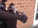 Stevige handgreep van ongeveer 90 centimeter lang. Kan eenvoudig gemonteerd worden aan een muur. Verstelling in horizontale en vertikale stand. Kleur : metaalkleur / zo te zien verchroomd. Gebruikt ma