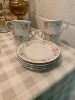 2 vierkante bijzettafeltjes 45cm hoog, 34x34cm breed. 2 Krukjes 30cm hoog, 32x32cm breed.