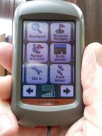Een robuuste, waterbestendige fiets- en wandel-gps van het merk garmin met een draaglintje en met sdhc 4gb met fietsbevestiging. M