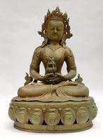 Mooi groot beeld van een zittend meisje op een zuil. Niet gemerkt of gesigneerd, maar op basis van vorm, glazuurkleur, kleitype, giettechniek en afwerking aan de onderkant schrijf ik het beeld toe aan