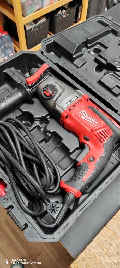Milwaukee pfh 26 t boormachine met snoer die wordt gebruikt zodra deze in nieuwstaat is, geleverd met papieren doos en tweede boorkop op te halen in menin of halluin
