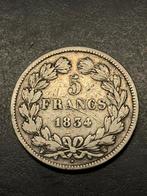 Zeer mooie munt , 5 franse frank uit 1834 louis phillippe 1 nette staat frankrijk